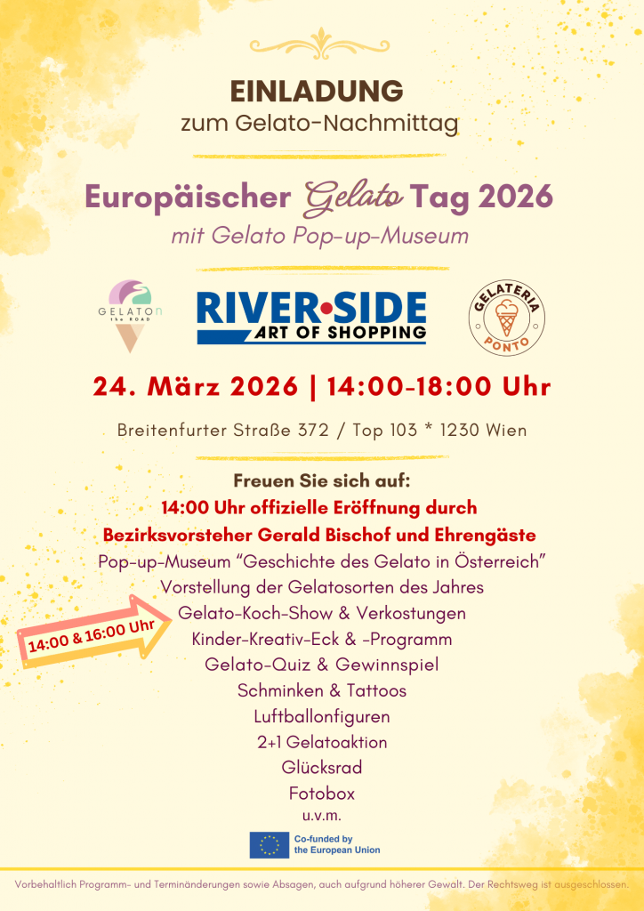 Der Europäische Tag des handwerklich hergestellten Eises ist der einzige vom Europäischen Parlament gewidmete Tag für ein Lebensmittel. Am 24. März 2026 feiern wir diesen besonderen Anlass gemeinsam im Einkaufszentrum Riverside mit der Gelateria Ponto und dem GELATOn the ROAD Pop-up-Museum.